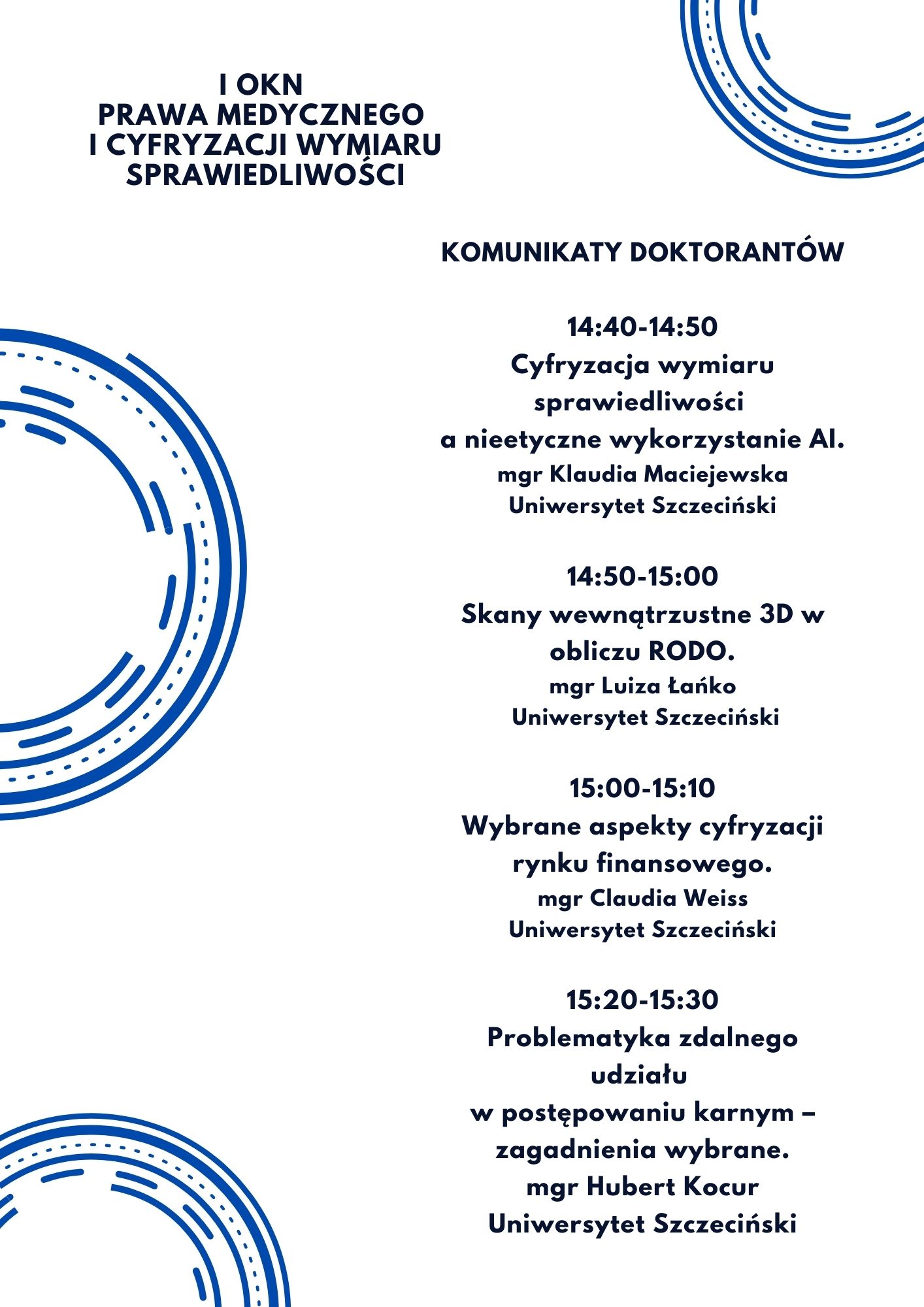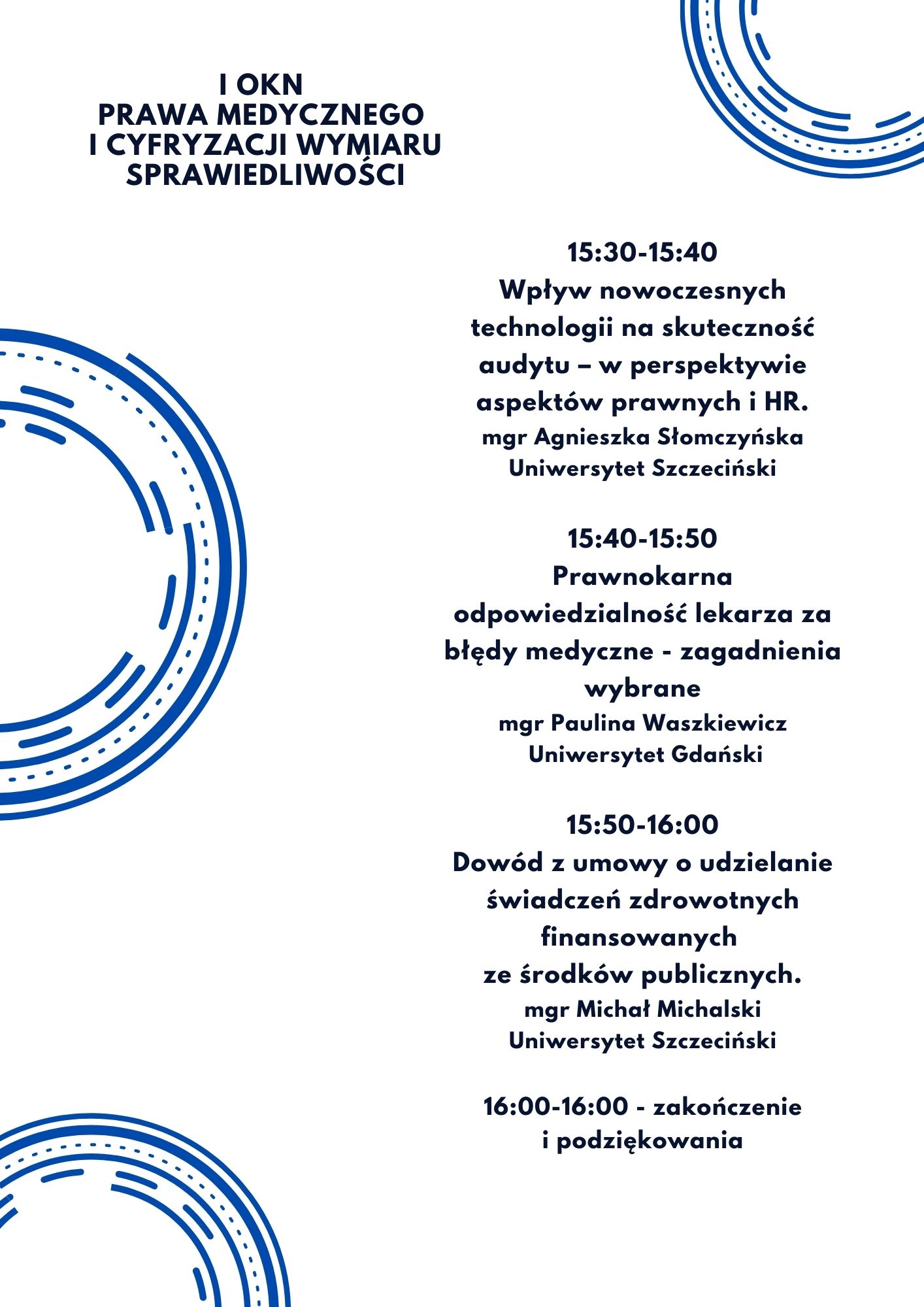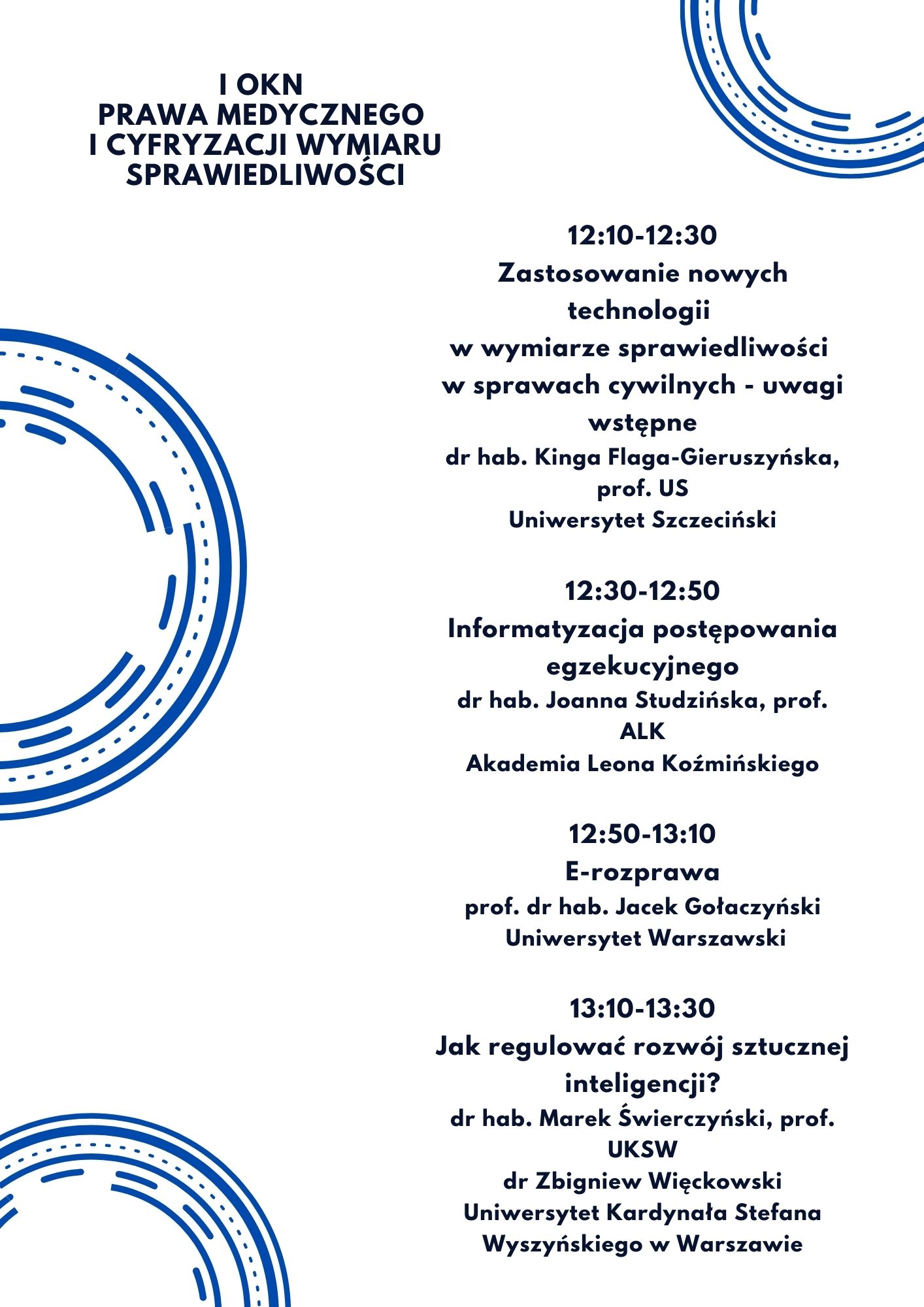 I OKN Prawa Medycznego i Cyfryzacji Wymiaru Sprawiedliwości to ogólnopolskie wydarzenie, które powstało z myślą o przedstawieniu aktualnych problemów i nowych wyzwań w obszarze prawa medycznego, zawodów medycznych, funkcjonowania systemu ochrony zdrowia, odpowiedzialności karnej, cywilnej, zawodowej oraz w obszarze cyfryzacji, digitalizacji wymiaru sprawiedliwości, wykorzystania nowych technologii w praktyce prawniczej.