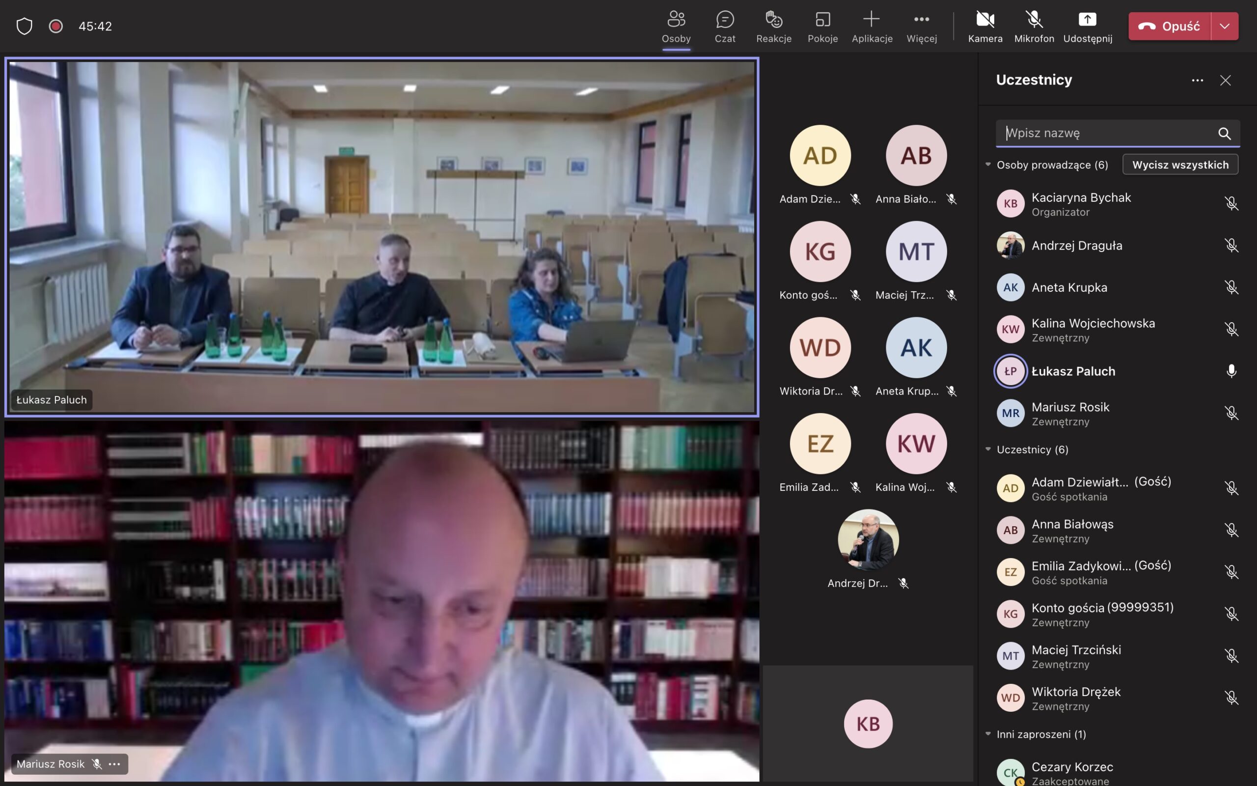 Spotkanie moderował ks. dr hab. Cezary Korzec prof. US. Obecni byli również ks. dr hab. Andrzej Draguła prof. US oraz pani dr hab. Kalina Wojciechowska prof. ChAT w Warszawie.