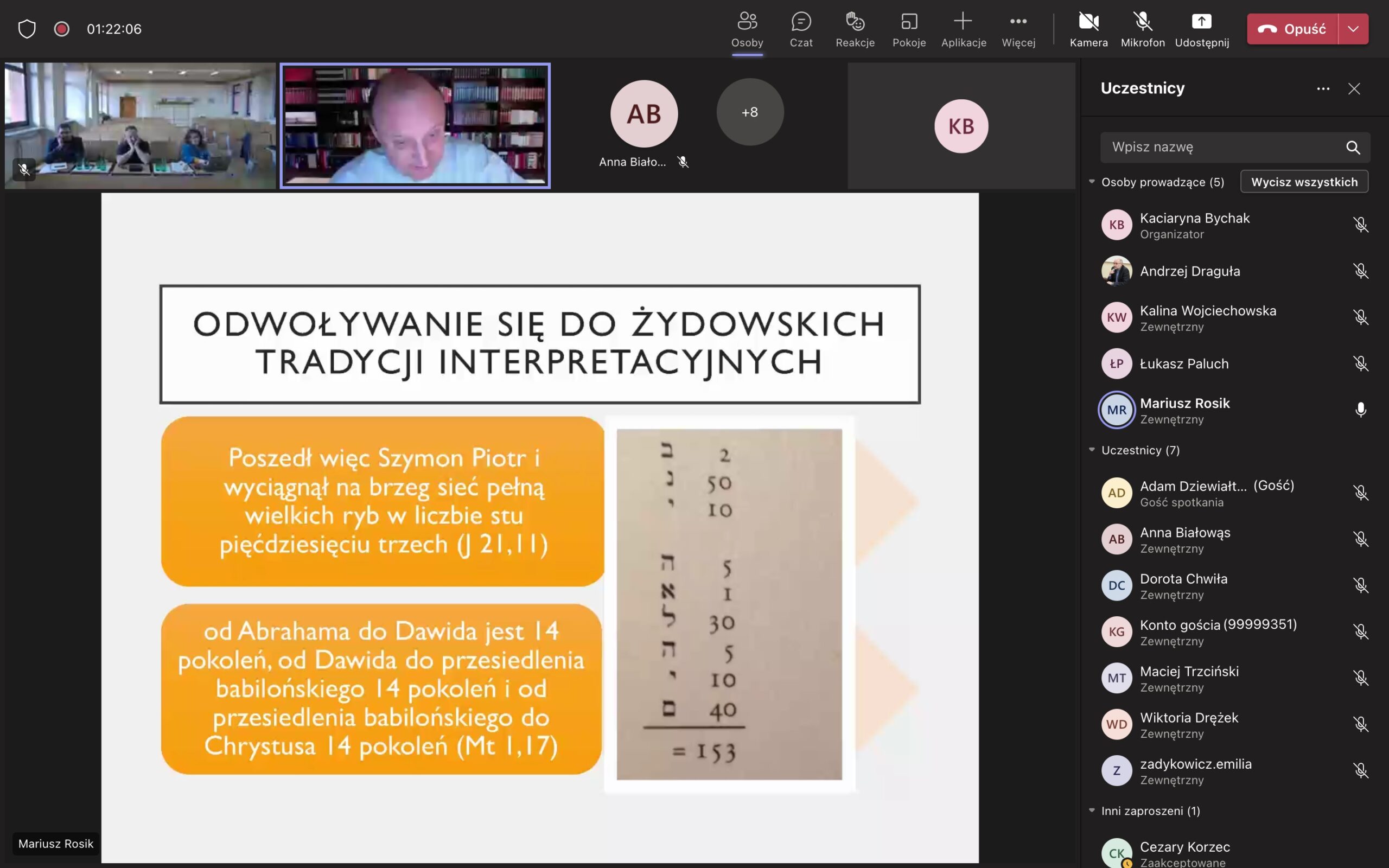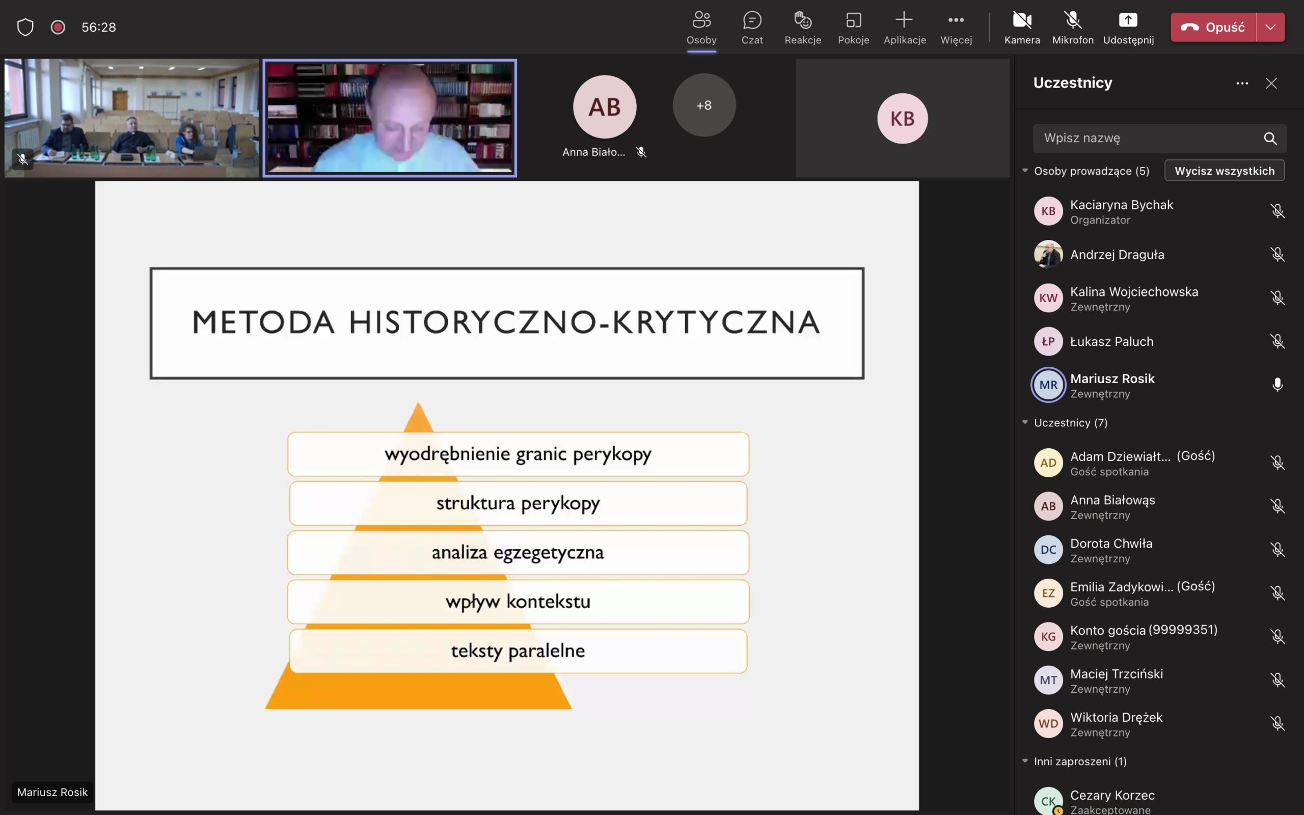 Gościem specjalnym i ekspertem minionego wydarzenia był ks. prof. dr hab. Mariusz Rosik z Papieskiego Wydziału Teologicznego we Wrocławiu. W pierwszej części spotkania ksiądz profesor wygłosił wykład pt. Krytyka redakcji (Redaktionsgeschichte) i elementy innych metod badań tekstu biblijnego na podstawie wybranych przykładów. W drugiej części obecni doktorantki i doktoranci mogli zadawać swoje pytania do zaproszonego eksperta.