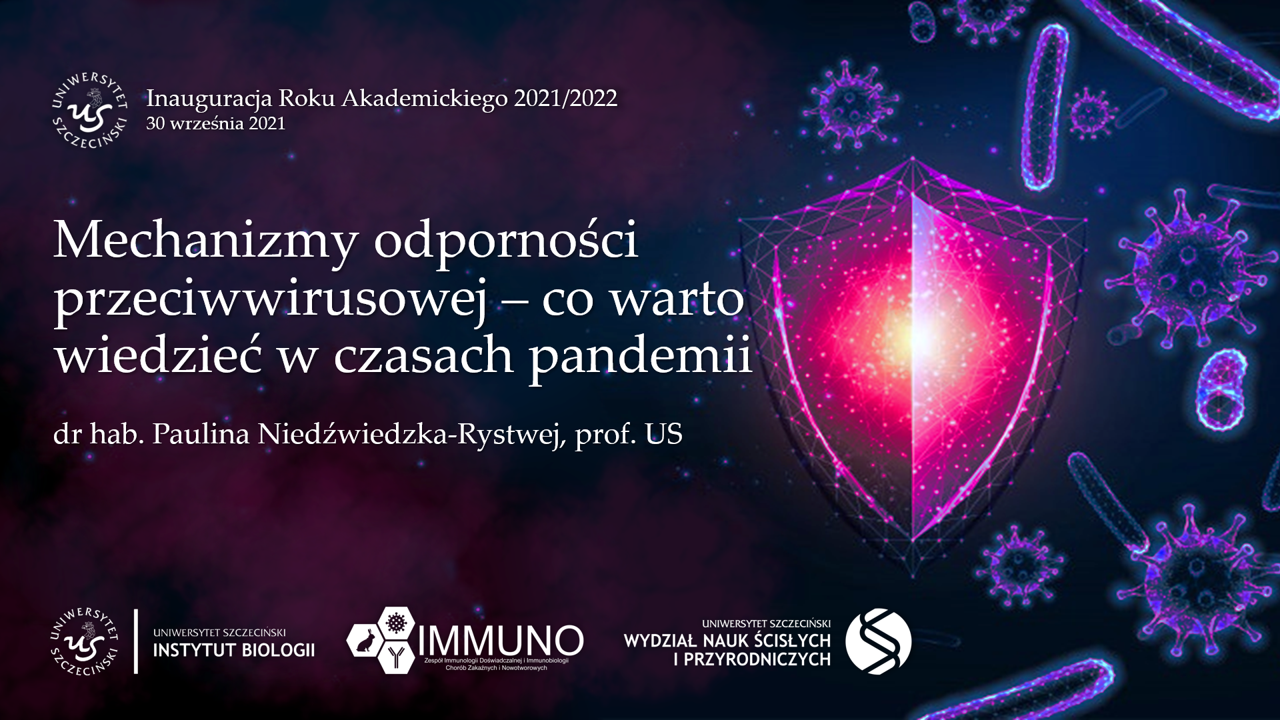W czasie inauguracji nagrodę Naukowca Roku US odebrała Pani dr hab. Paulina Niedźwiedzka-Rystwej, prof. US – Zastępca Dyrektora Szkoły Doktorskiej Uniwersytetu Szczecińskiego i wygłosiła wykład inauguracyjny pt.: „Mechanizmy odporności przeciwwirusowej – co warto wiedzieć w czasach pandemii?”