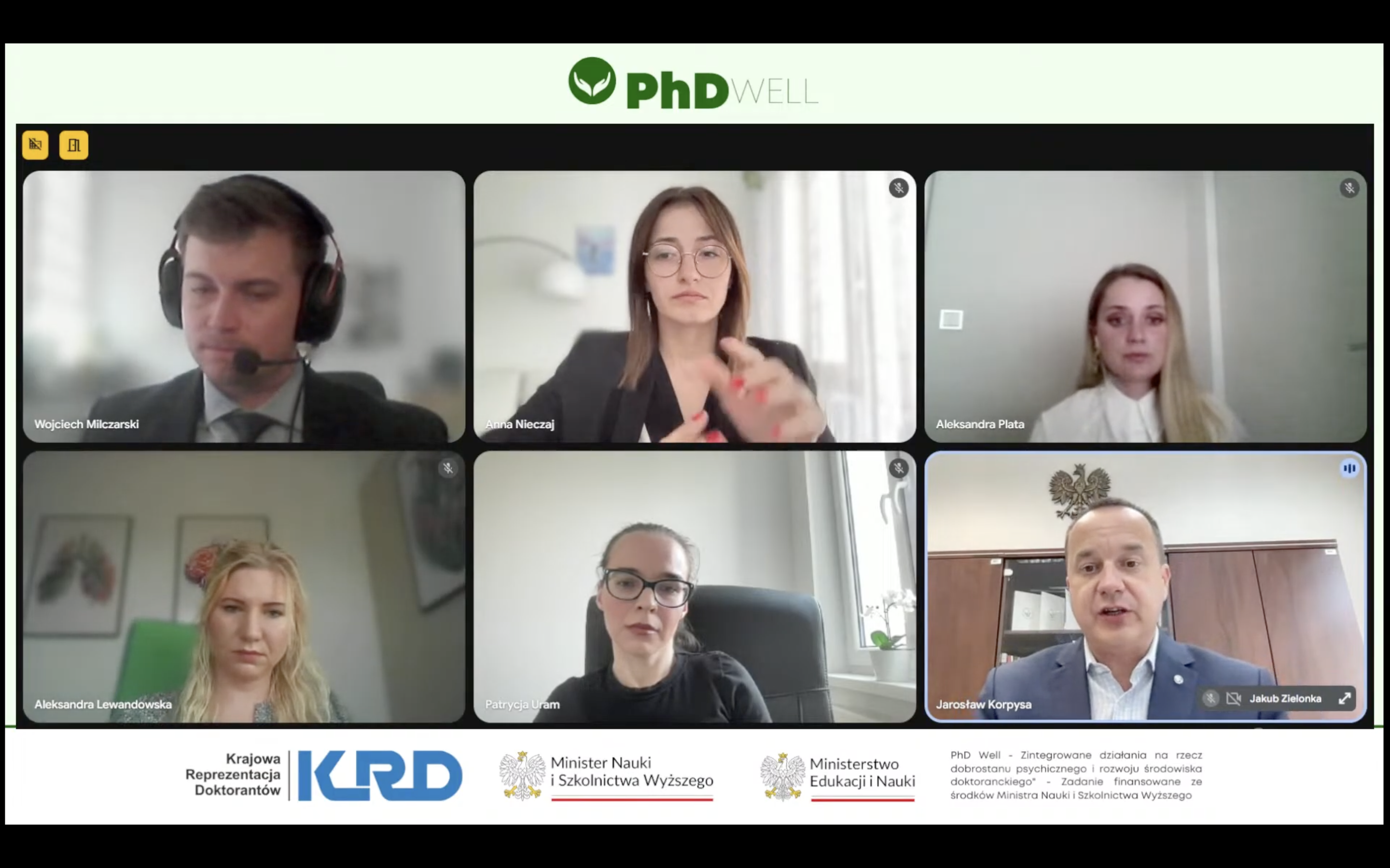 W dniu 9 czerwca br. odbyło się inauguracyjne webinarium projektu PhDwell – Zintegrowane działania na rzecz dobrostanu psychicznego i rozwoju środowiska doktoranckiego, realizowanego przez Krajową Reprezentację Doktorantów.