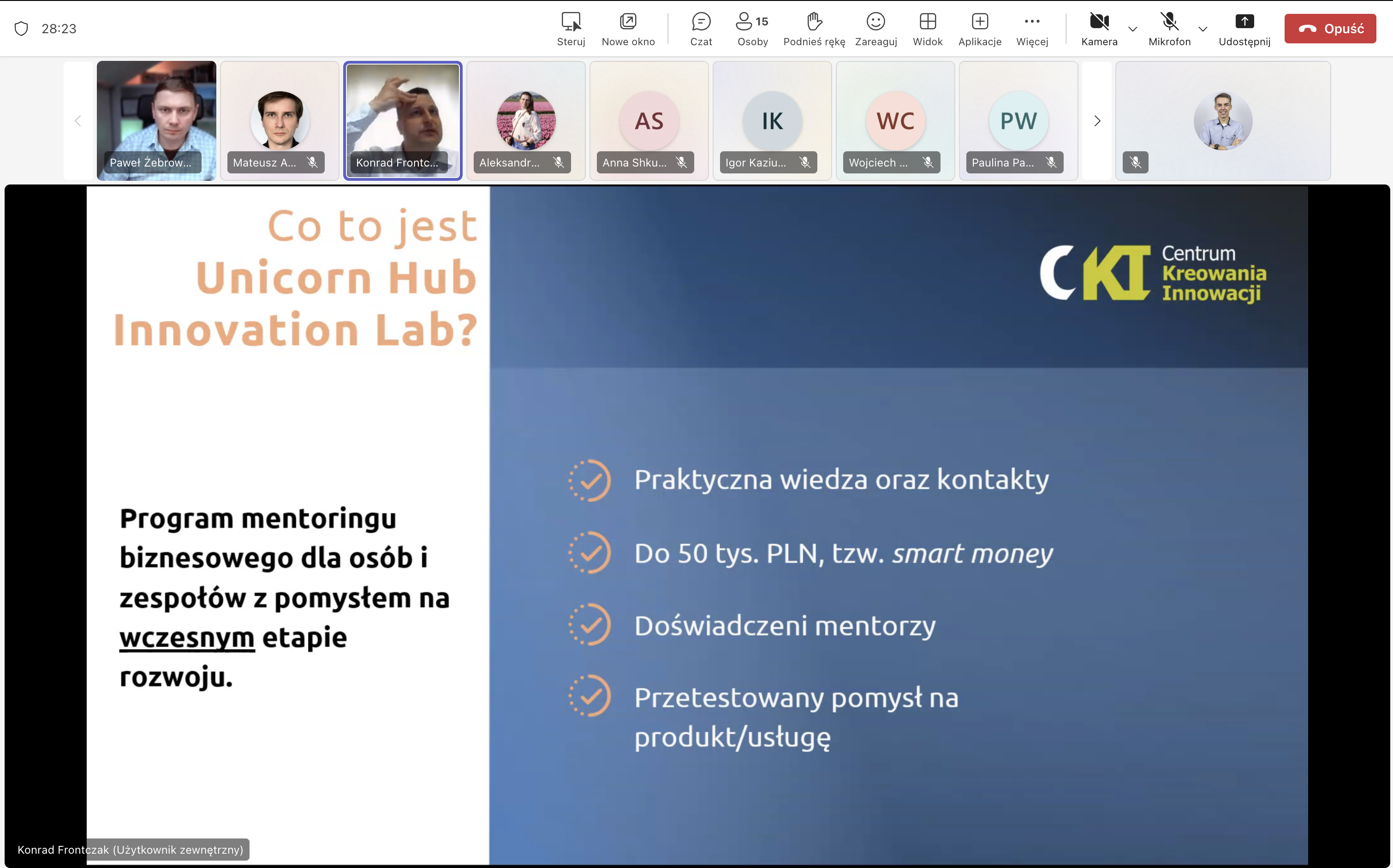 23 kwietnia br. mieliśmy okazję uczestniczyć w inspirującym spotkaniu informacyjnym na temat programu mentoringowego Unicorn Hub Innovation Lab. 🚀