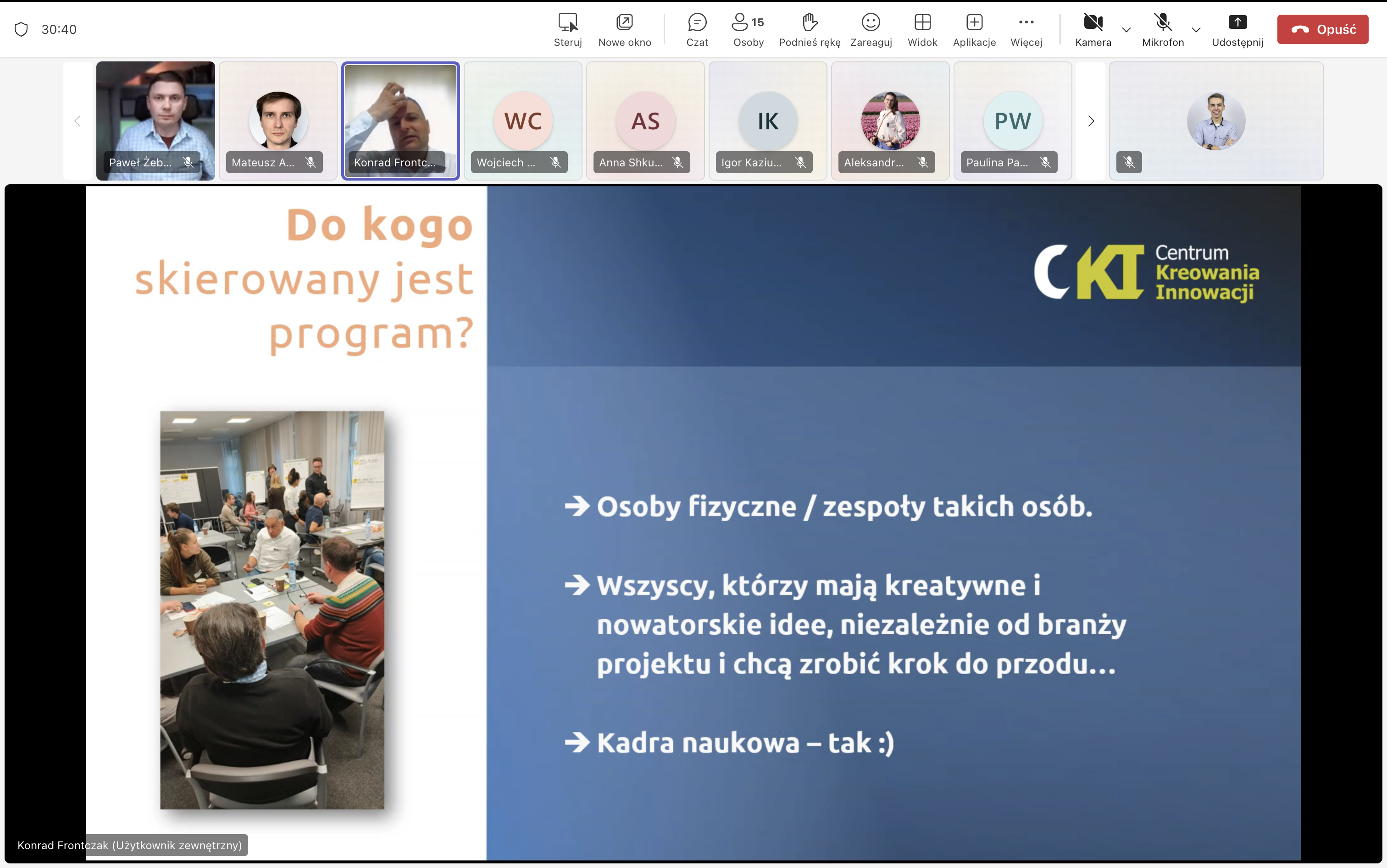 Panowie Paweł Żebrowski i Konrad Frontczak opowiedzieli o celach programu oraz zaprezentowali przykłady projektów rozwijanych przez uczestników poprzedniej edycji. 💡