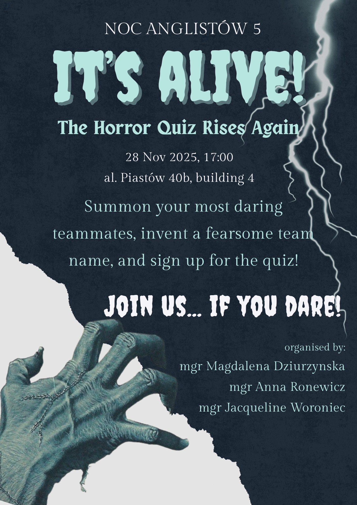 Już wkrótce strasznie straszna 5ta edycja Nocy Anglistów! Noc Anglistów to ogólnopolskie wydarzenie przygotowane przez ośrodki anglistyczne z całej Polski.