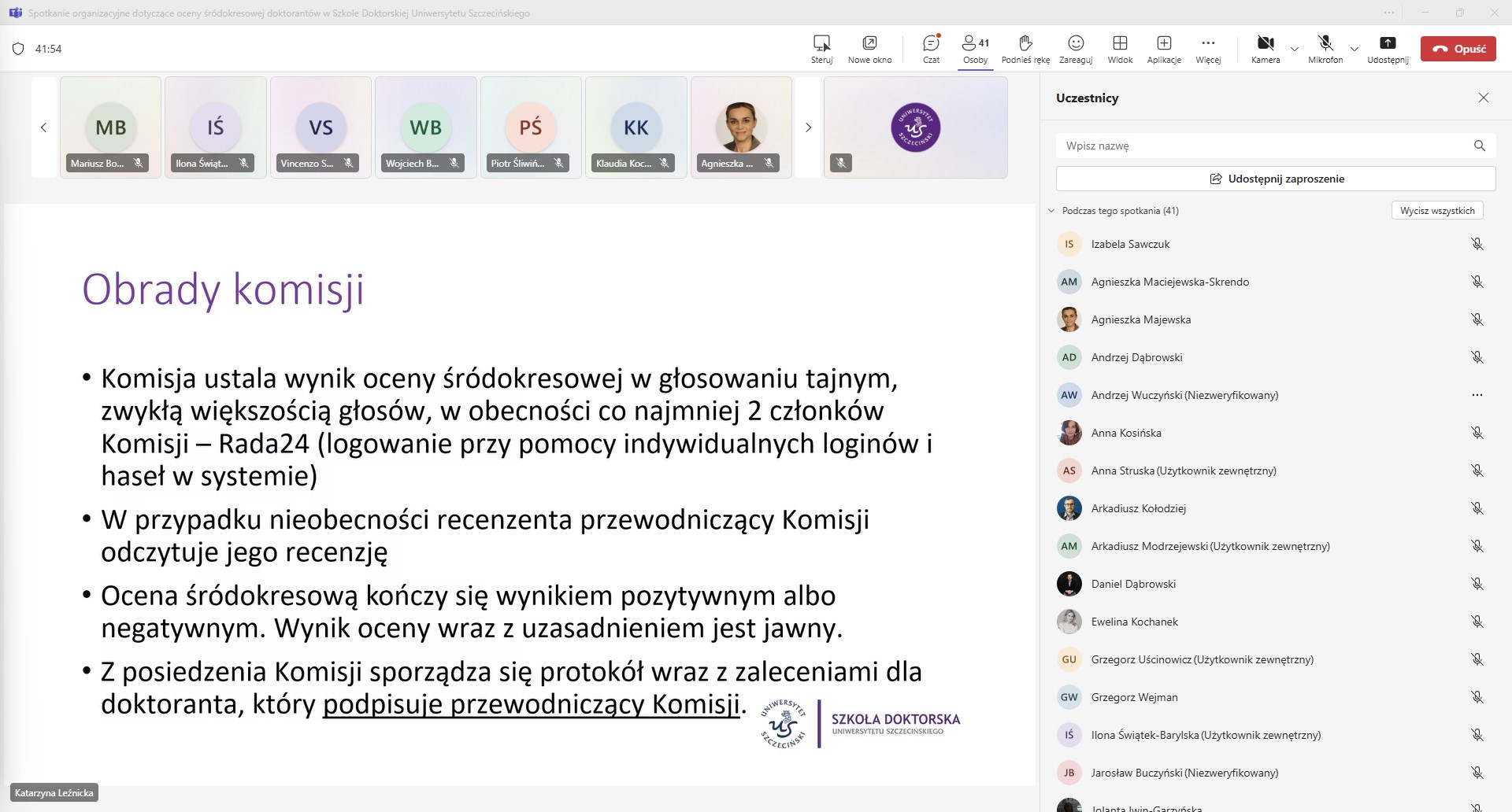 Spotkanie w formie on-line z poprowadziła Zastępczyni Dyrektora Szkoły Doktorskiej dr hab. Katarzyna Leźnicka, prof. US.