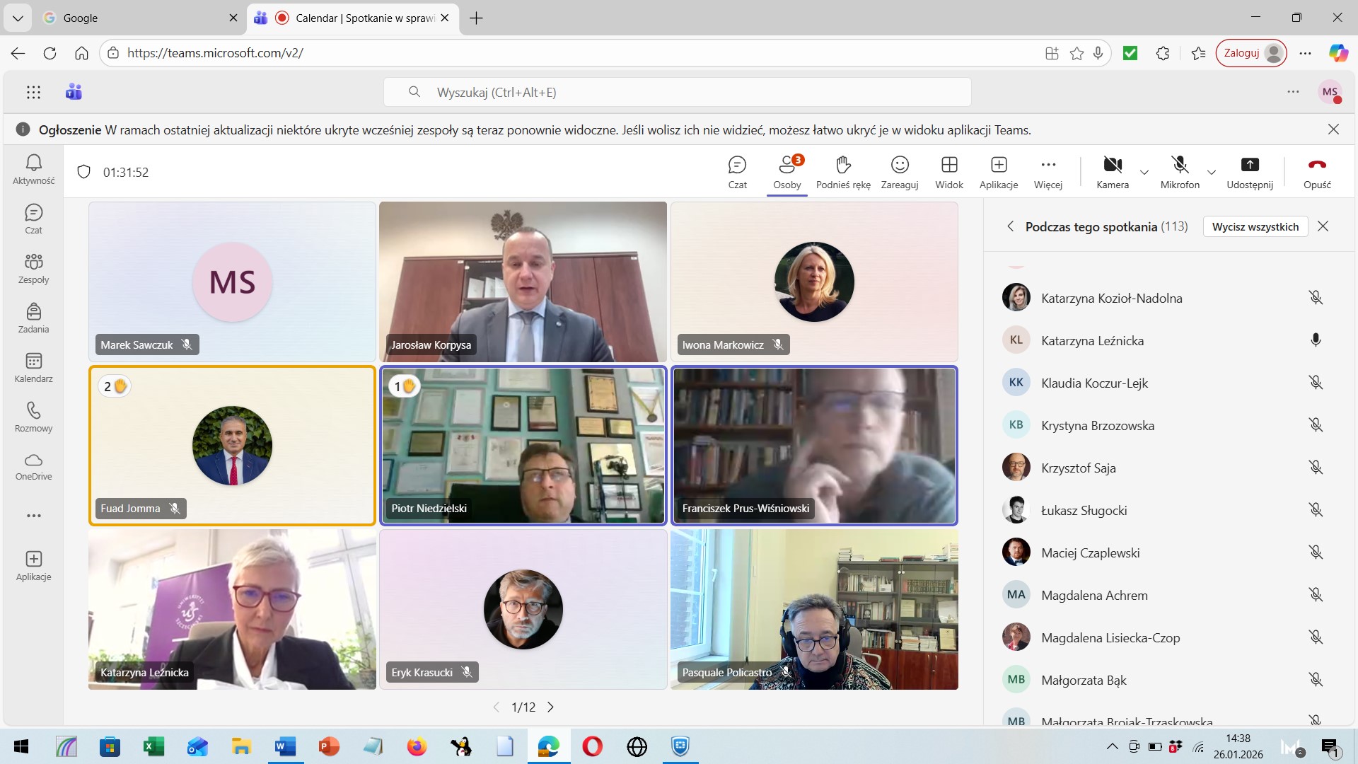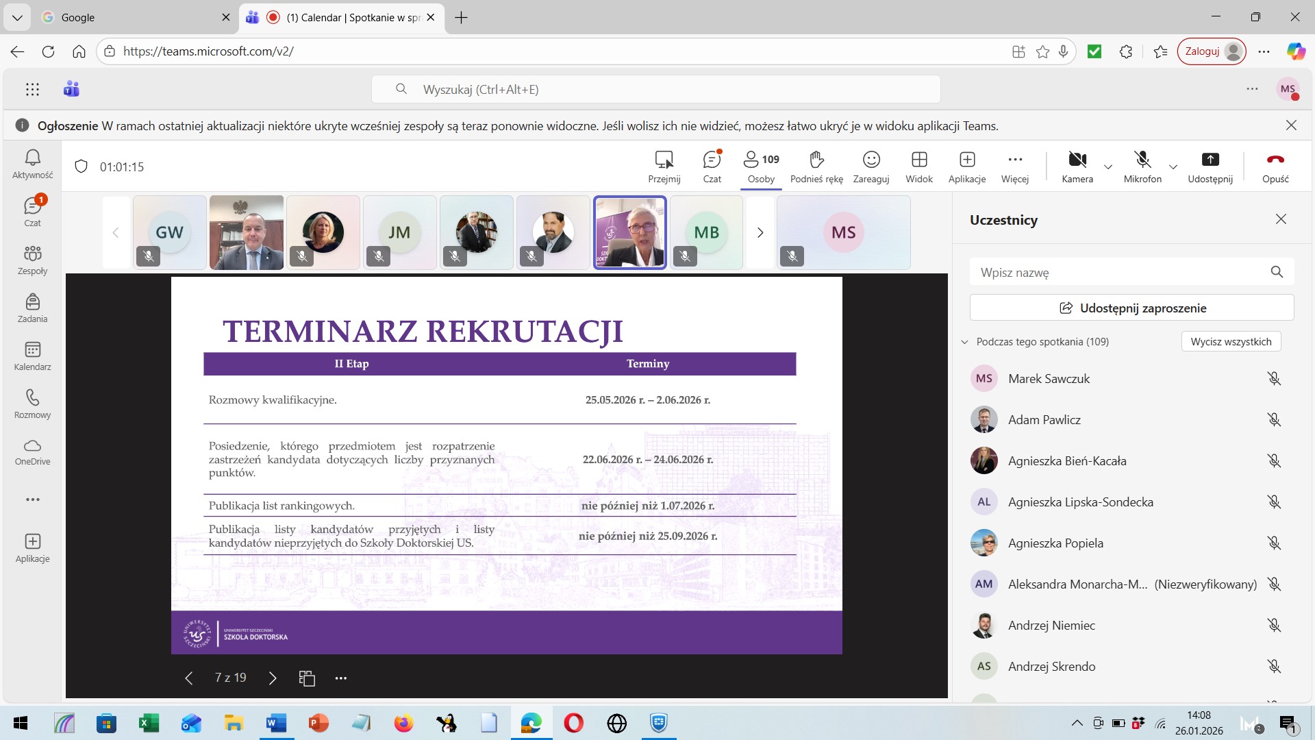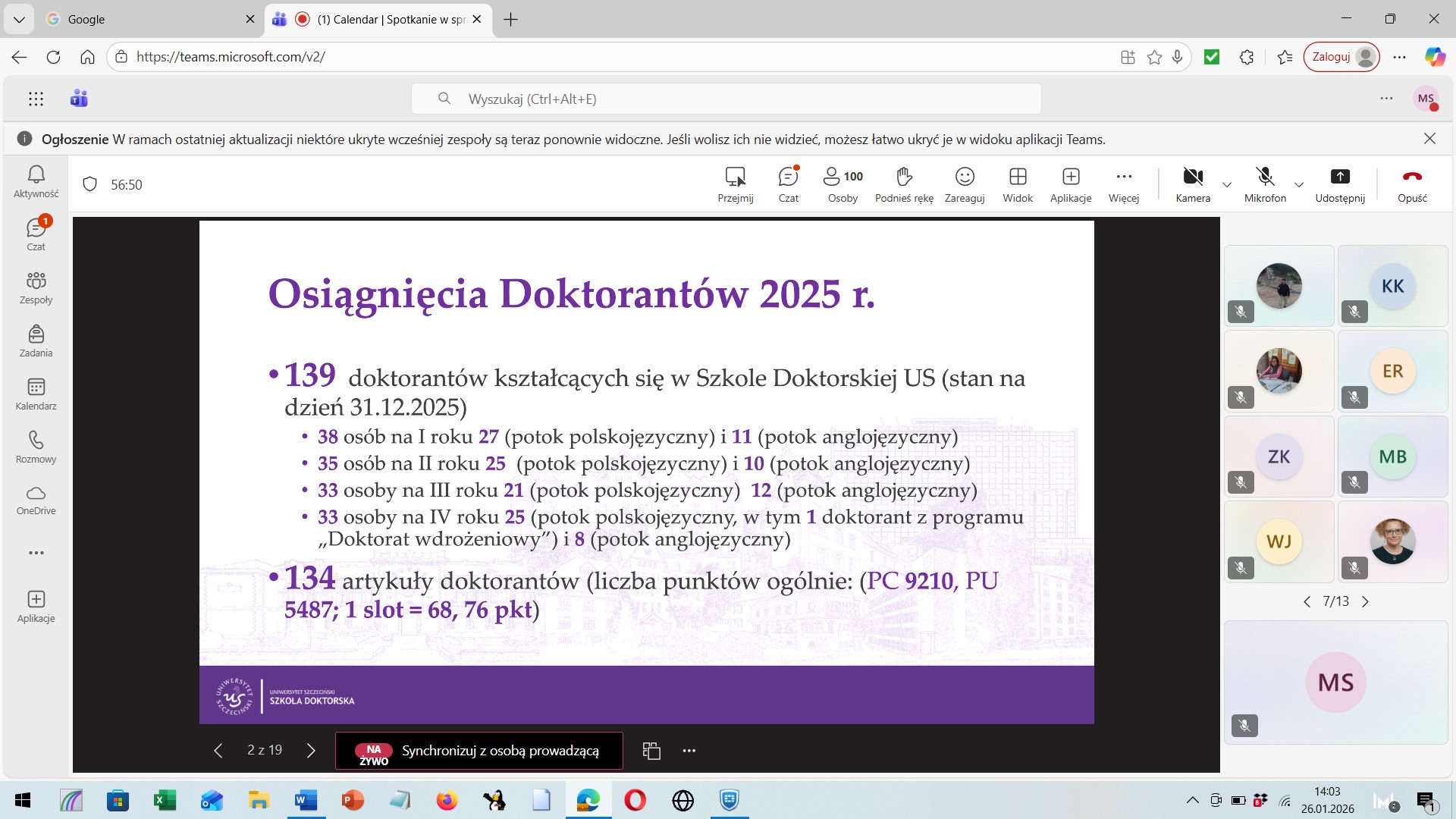 W dniu 26 stycznia miało miejsce spotkanie z samodzielnymi pracownikami, potencjalnymi przyszłymi promotorami Doktorantów, w sprawie procesu rekrutacji do Szkoły Doktorskiej na kształcenie w r.a. 2026/2027.
